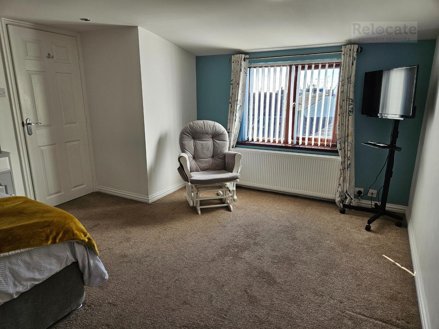 Carpet flooring. Window to front. Built-in storage/wardrobe.