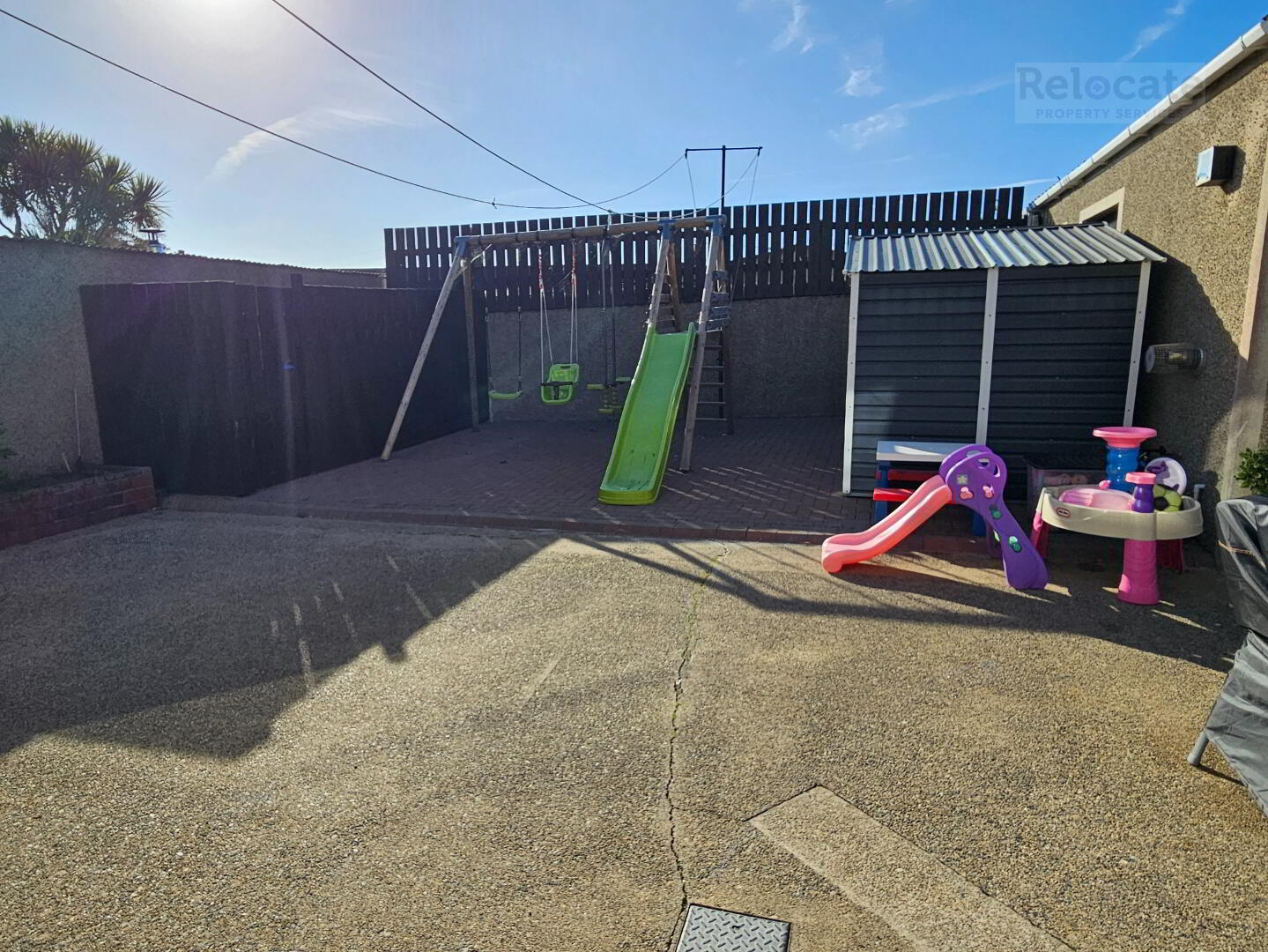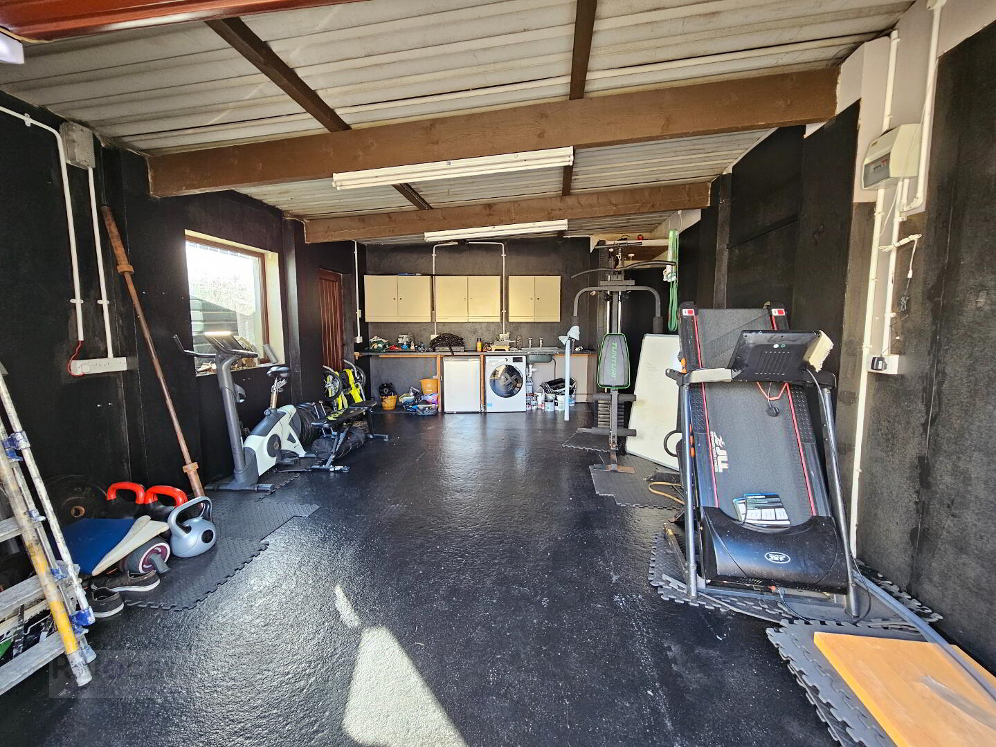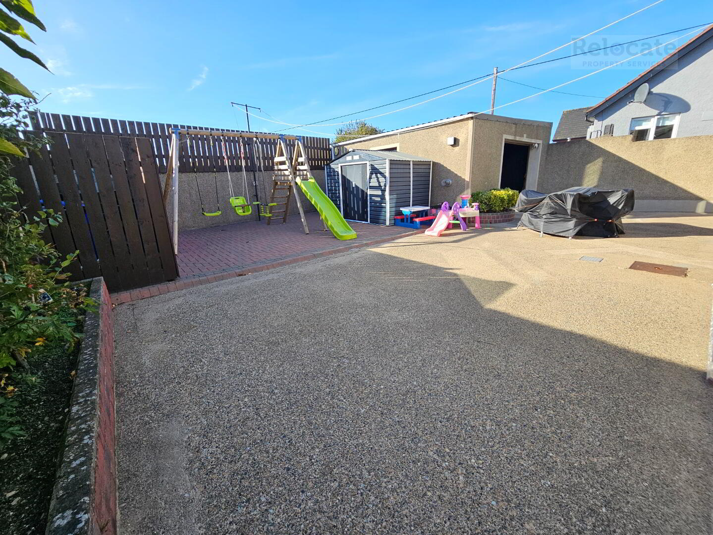 Electric roller garage door with PVC door to side. Plumbed for utility area. seperate w.c.