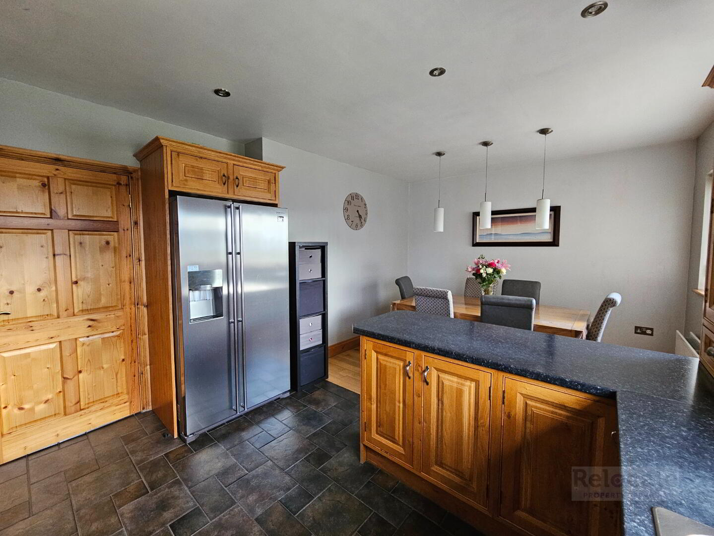 Solid oak units to match kitchen. Recess for washing machine and tumble dryer. Tiled splashback and tiled floor. Oak pvc rear door. Window to the rear. Door to garage.