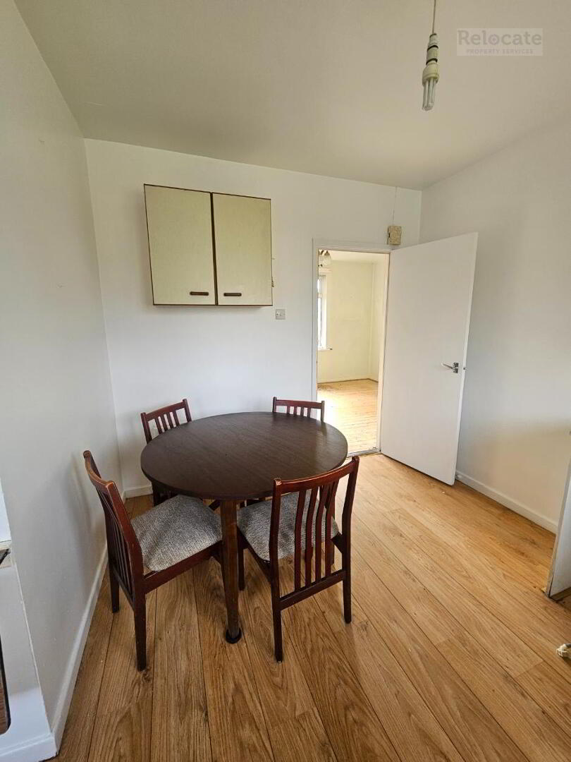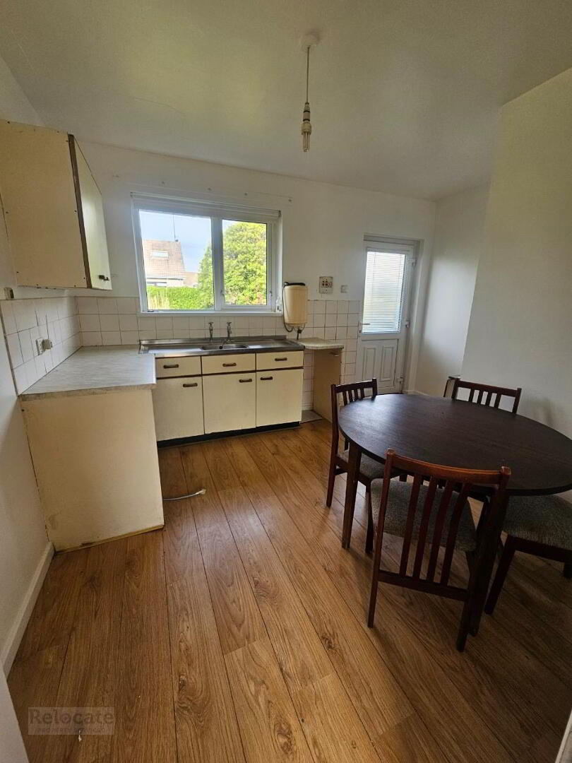Limited kitchen units, high and low. Laminate wooden floor. Window to rear. External PVC rear door. Storage cupboard with shelving.