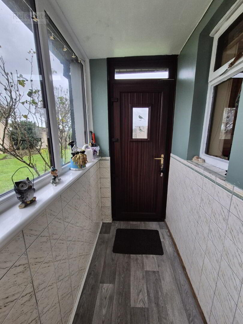 Vinyl flooring. Tiled walls. PVC Glazing surround and windowsill. Rear external pvc door with light panel over.