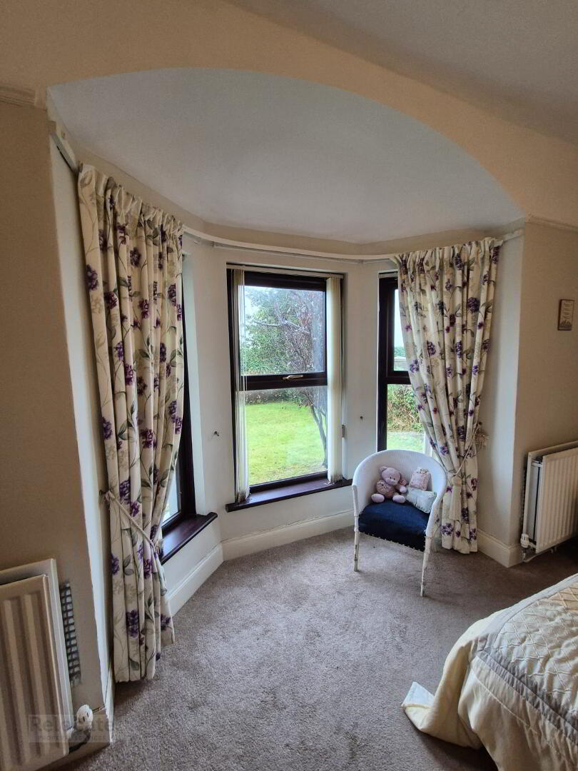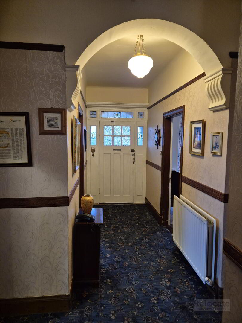 Carpet flooring. Original doors. Feature arched ceiling with corbels. Floral design dado rail/ Picture rail. Double radiator. Phone point.