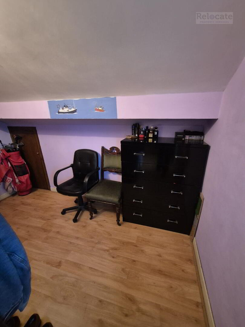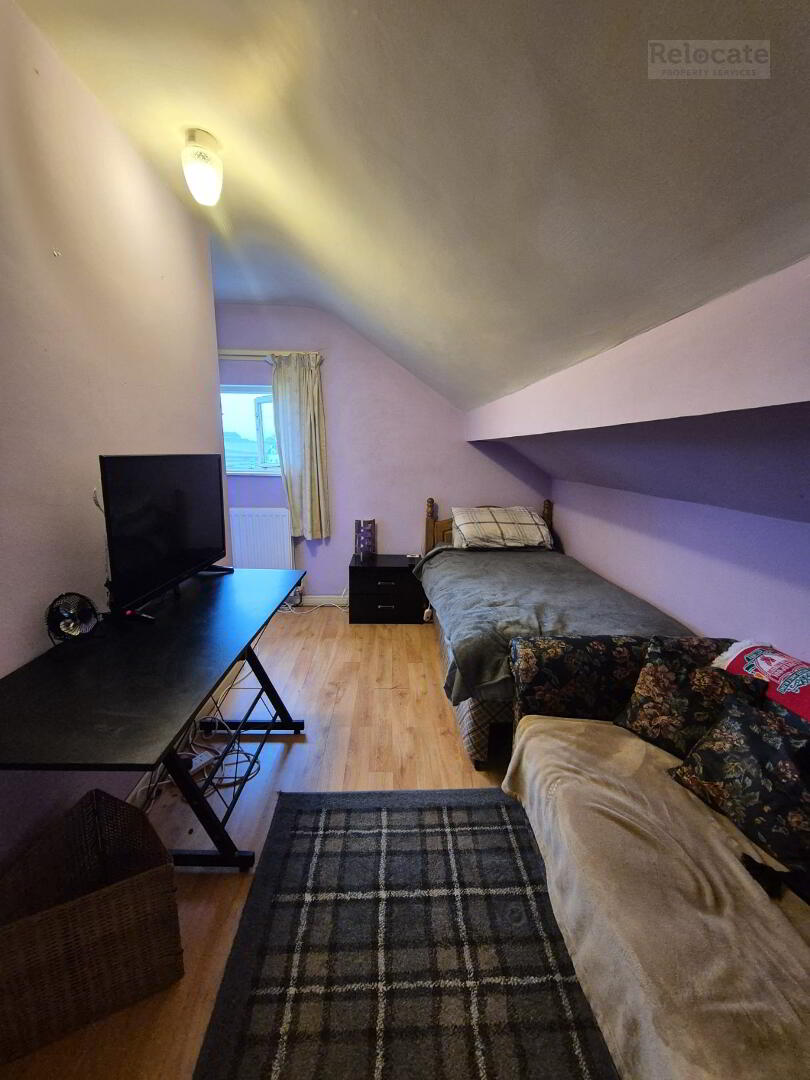 Wall between the two areas, would suit for bed on one end with wardrobe area in the other. Laminate wood flooring. Double radiator. Wooden side window. Access to storage eaves.