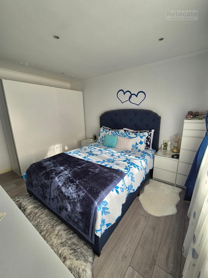 Built in mirrored wardrobes. Rear window with granite cill. Radiator. 4 double power points. Ceiling coving. Spotlights.