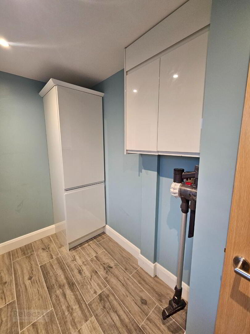 Built in units to match kitchen. Recess for washing machine and tumble dryer. Tiled floor. Window to the rear. Spot lighting.