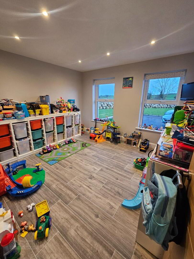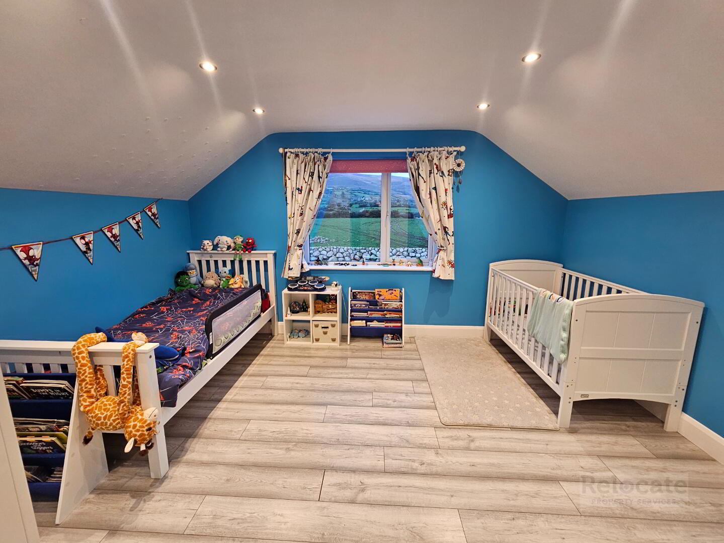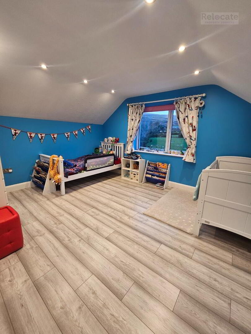 The spacious accommodation has a great flow of natural light with a vaulted ceiling to the sunroom. The ground floor holds kitchen/dining/living area, utility, playroom/ 4th bedroom, large family bathroom and downstairs toilet. There are three bedrooms and second family bathroom all on the first floor.