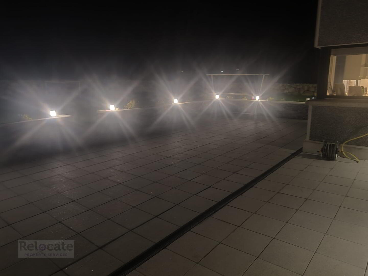 To the rear there is a paved patio area with low cladded wall. External lighting. Large garden with private lawn and stunning mountain views.