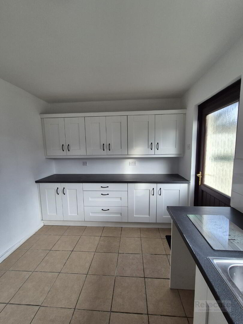 Fitted units with high and low level. Stainless steel sink and drainer. Electric oven & hob with extractor fan over. Double radiator. Window to rear. Rear external PVC door with privacy glazing.