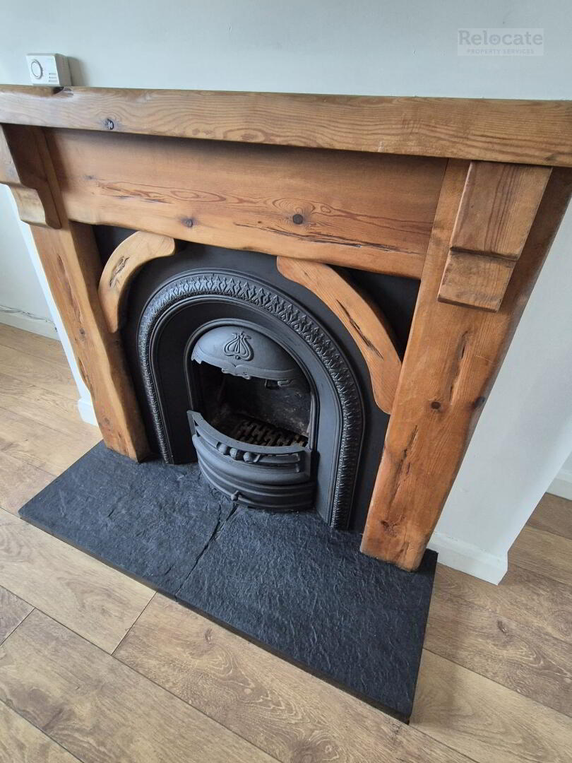 Wooden floor. Ceiling coving and ceiling rose. Window to front. Double radiator. TV point. Open fire with wood surround and cast iron insert.