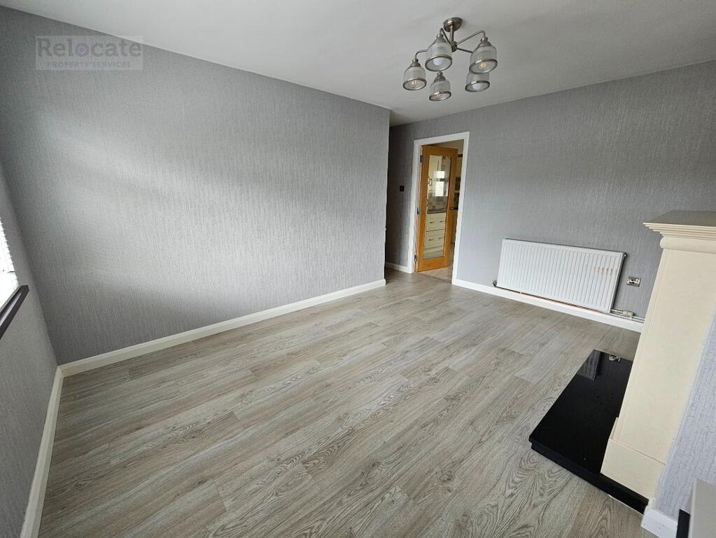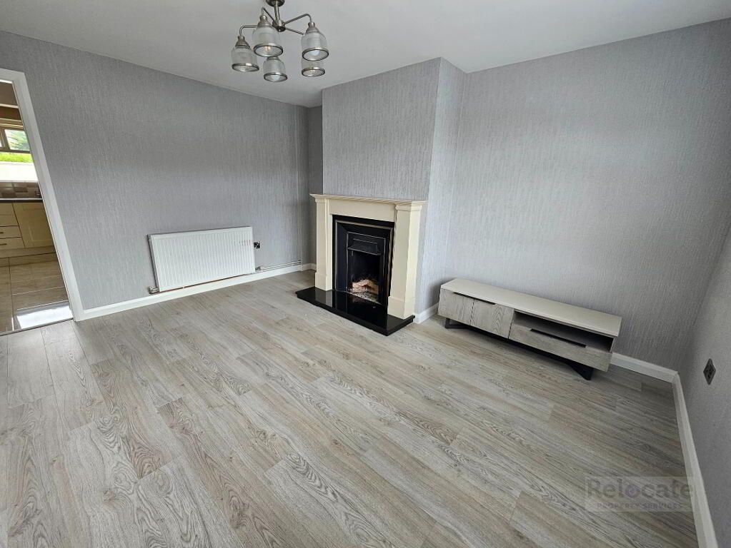 Large window to the front. Fireplace with open fire, cream surround and granite hearth.