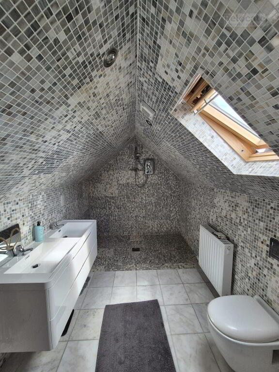 Fully tiled wet room. Redring electric shower. Chrome towel heater. Skylight window.