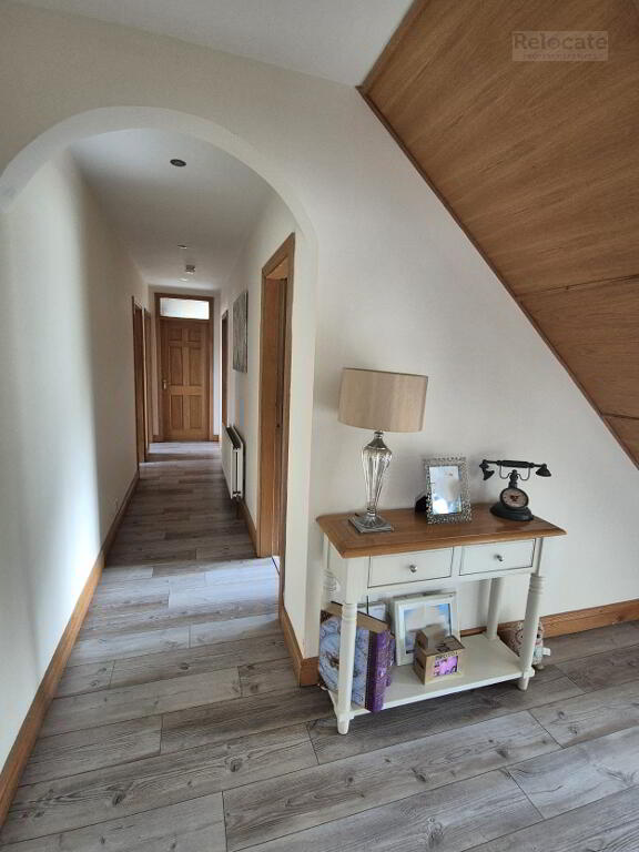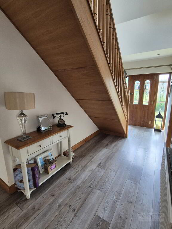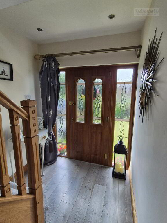 Through oak glazed PVC front door with side panels. Laminate wooden floor. Solid oak staircase. Arch feature to hallway. 2 double radiators. Phone point. Double power sockets.
