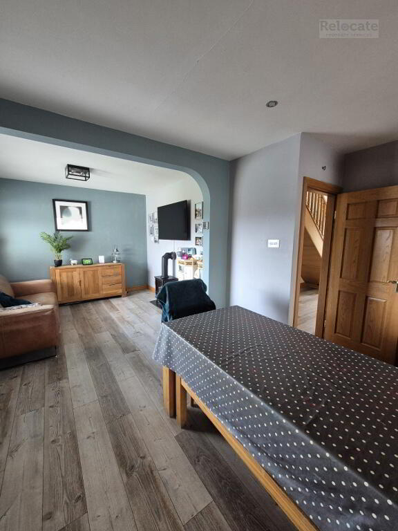 Laminate wooden floor. Rear PVC glazed door with side panel. Access to attached garage.