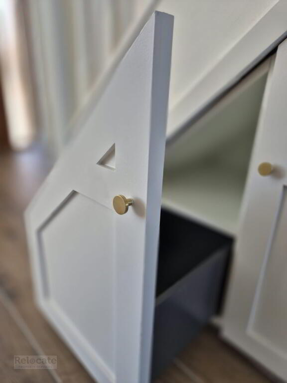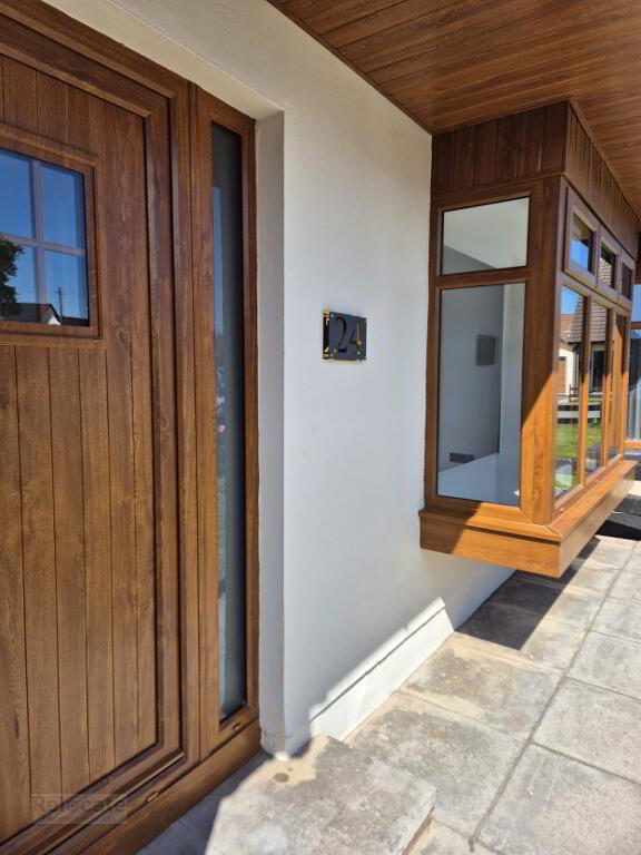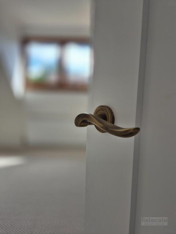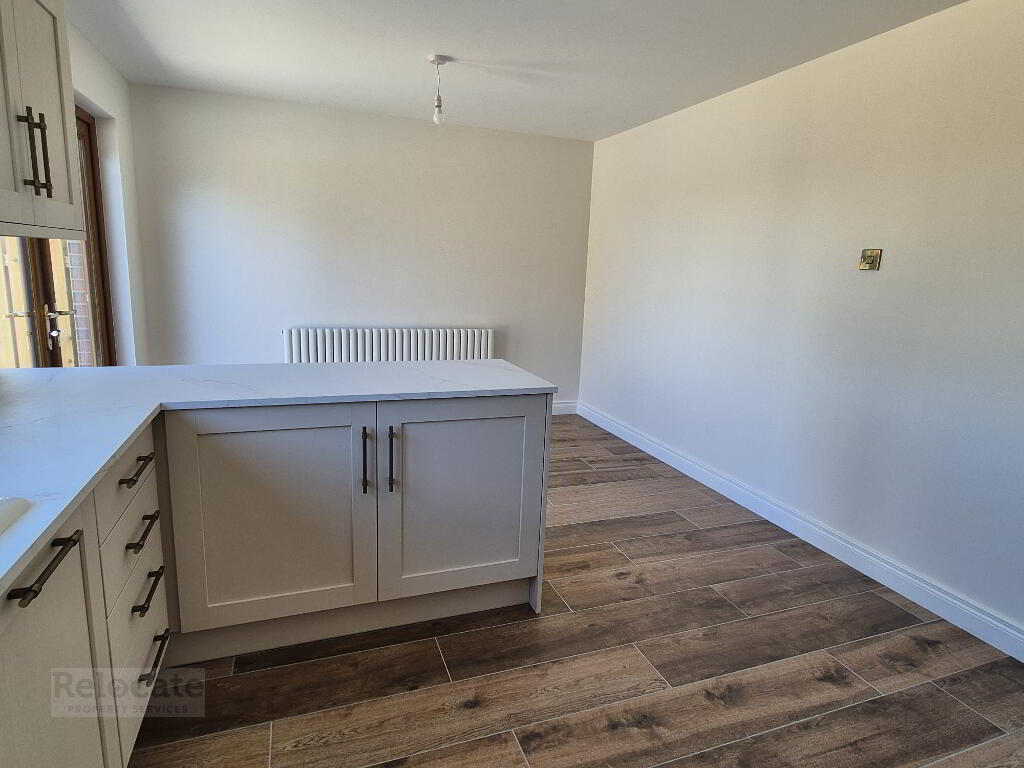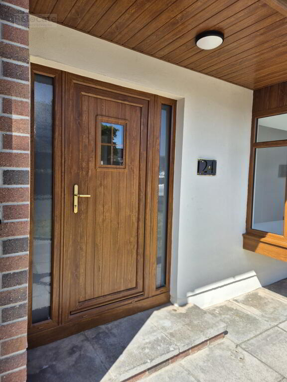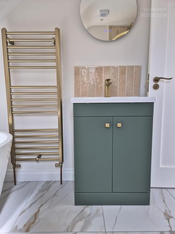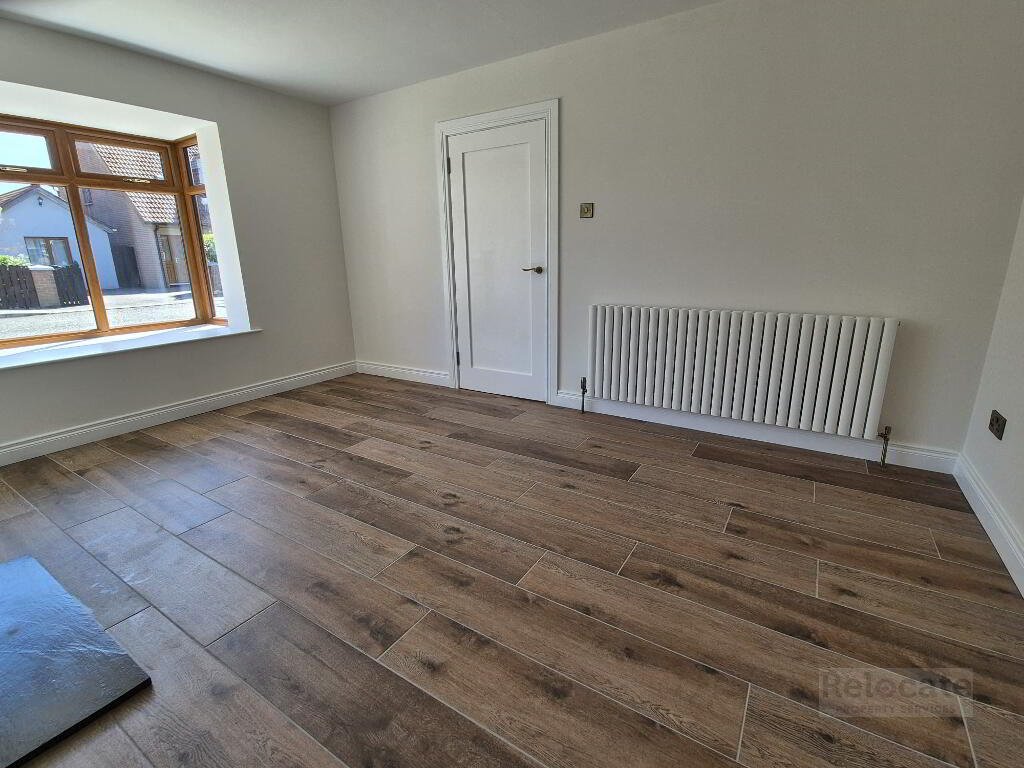 Through new oak pvc front door with privacy glazed side panels. New wood effect tiled floor. WIFI/phone point. Single power point. White painted staircase with new luxury carpet. New built in understairs storage with shelving and pull-out drawer. Access to hotpress with new pressurised system, including new water tank. New designer radiator with brass fittings. Thermostat control. Smoke alarm.