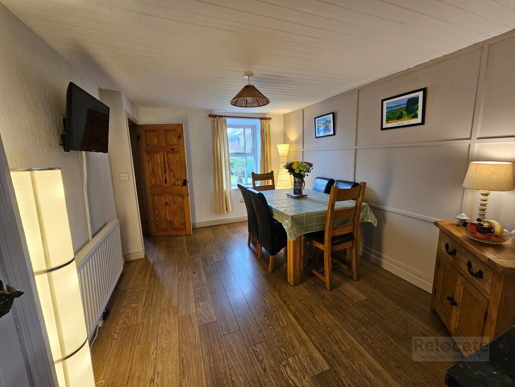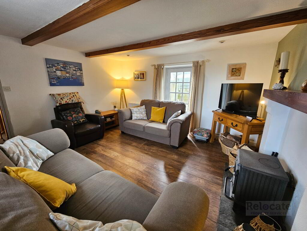 Window to the front and rear. Glazed door to the rear. Wood burning stove. Spot lighting. Laminated wooden floor. Feature wooden ceiling beams.