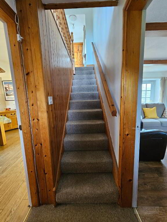 Feature wall panelling. Window to the front. Tongue and groove painted ceiling. Laminated wooden floor. Under stairs storage.