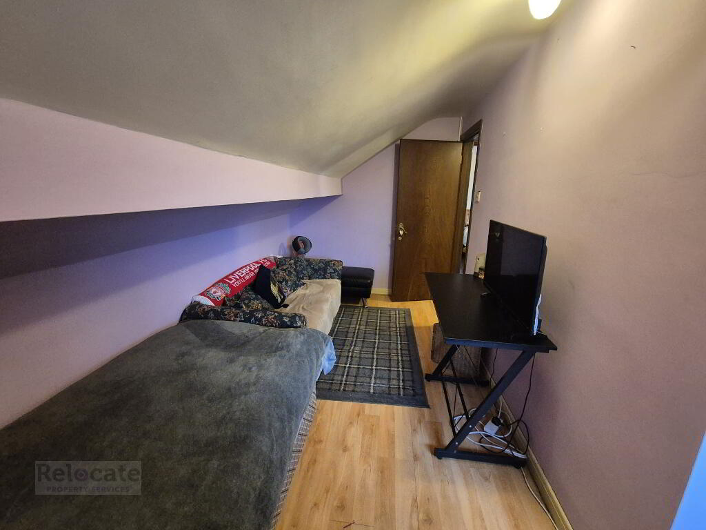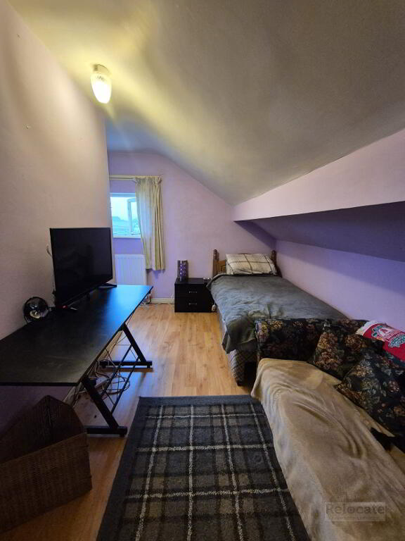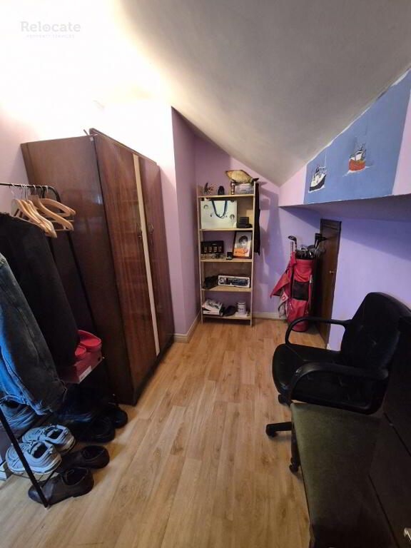 Wall between the two areas, would suit for bed on one end with wardrobe area in the other. Laminate wood flooring. Double radiator. Wooden side window. Access to storage eaves.