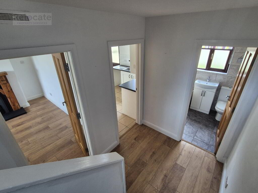 Fitted units with high and low level. Stainless steel sink and drainer. Electric oven & hob with extractor fan over. Double radiator. Window to rear. Rear external PVC door with privacy glazing.